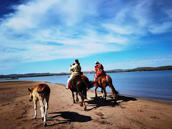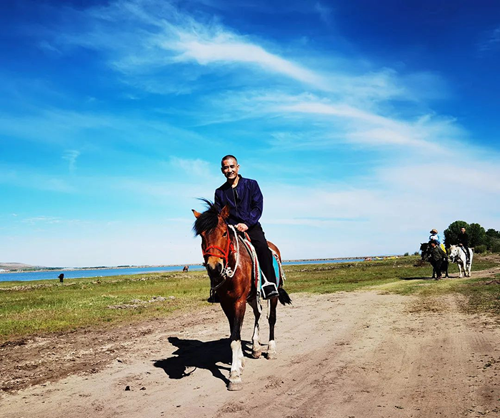 夏天的草原綠草如茵,深呼吸一口,清香的草木味撲鼻而來,讓人心曠神怡、如癡如醉。漫游在草原上,風吹草動,形成了一幅如詩如畫的景象,正如北朝民歌“天蒼蒼,野茫茫,風吹草低見牛羊”!騎在馬背上,悠哉游哉,仿佛進入了世外桃源。