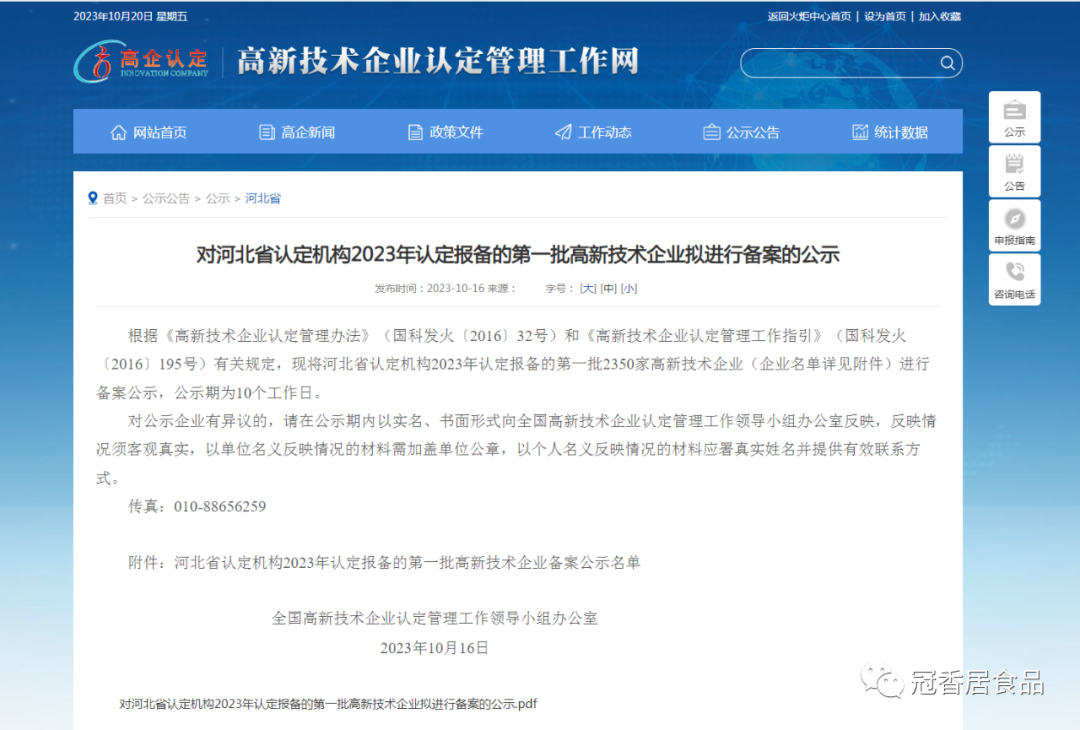 恭喜冠香居公司被認(rèn)定為河北省高新技術(shù)企業(yè)